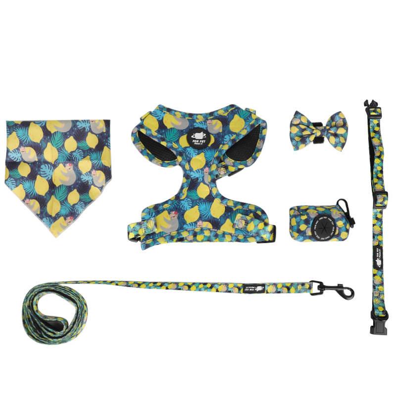Dog Harness Set come with Harness,Leash,Collar,Poop Bag Holder,Bow Tie,Bandana