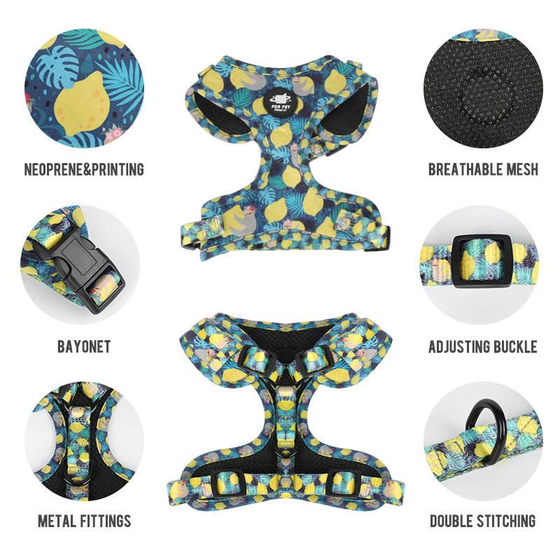 Dog Harness Set-Blue & Yellow Print