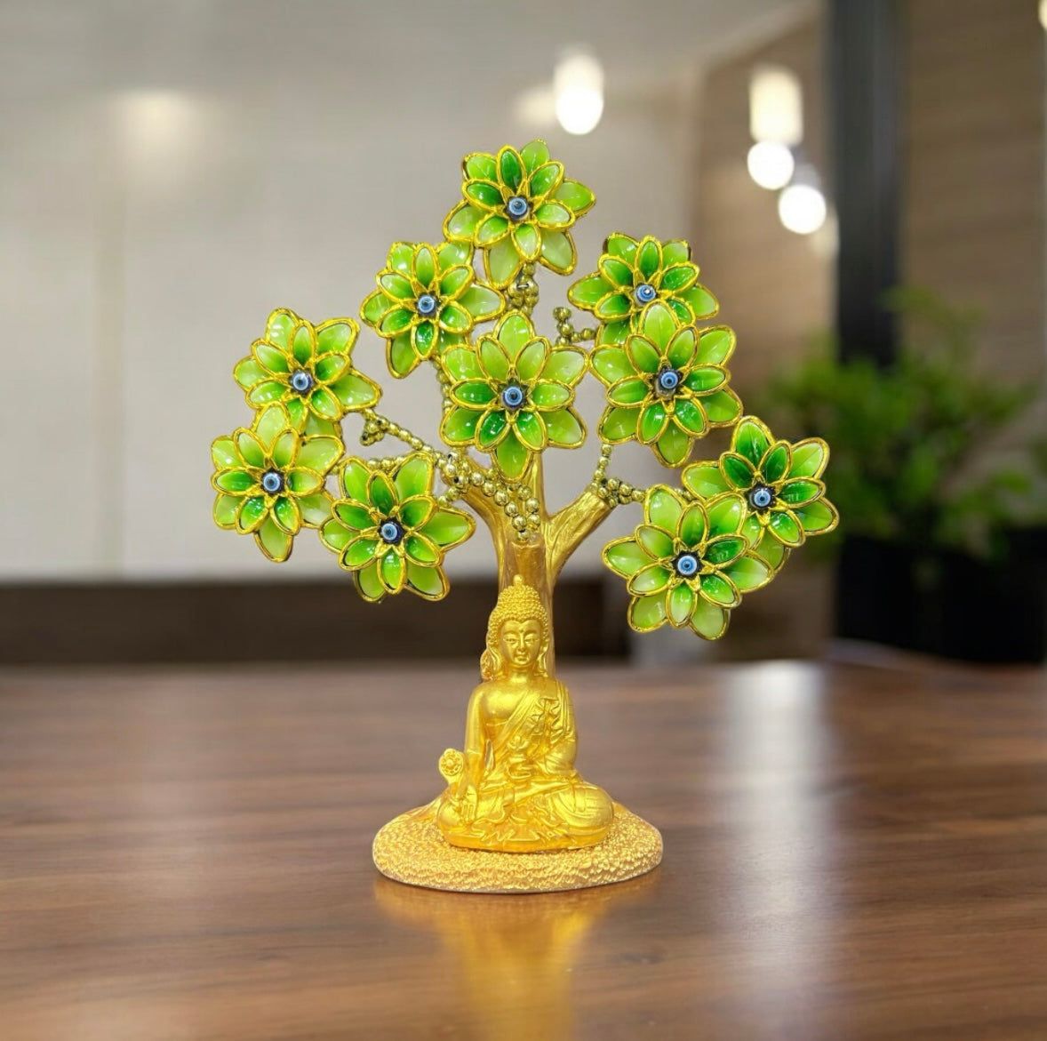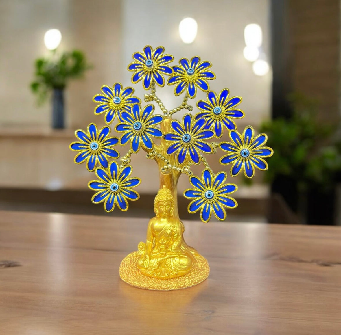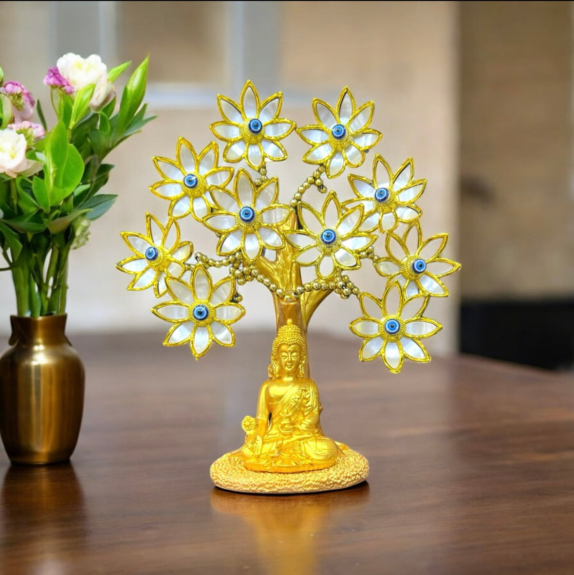 VASTU FENGSHUI EVILEYE TREE WITH GAUTAM BUDDHA SITTING UNDER THE TREE BATE. FOR GOODLUCK & HOME DECOR.